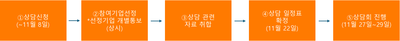 | 상담회 진행 절차 | ※ 상담 대상 기업의 스마트공장 구축과 관련된 자료는 사전에 사무국에서 취합하여 컨설팅 전문가에게 전달 예정 |